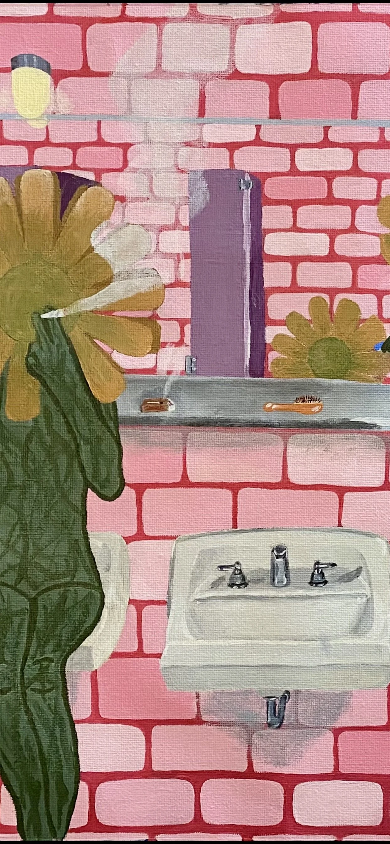 A collage acrylic painting inspired by objects found around my bedroom and then manipulated to encapsulate how they appear through my eyes.